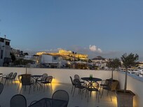 View from rooftop terrace of city & acropolis.