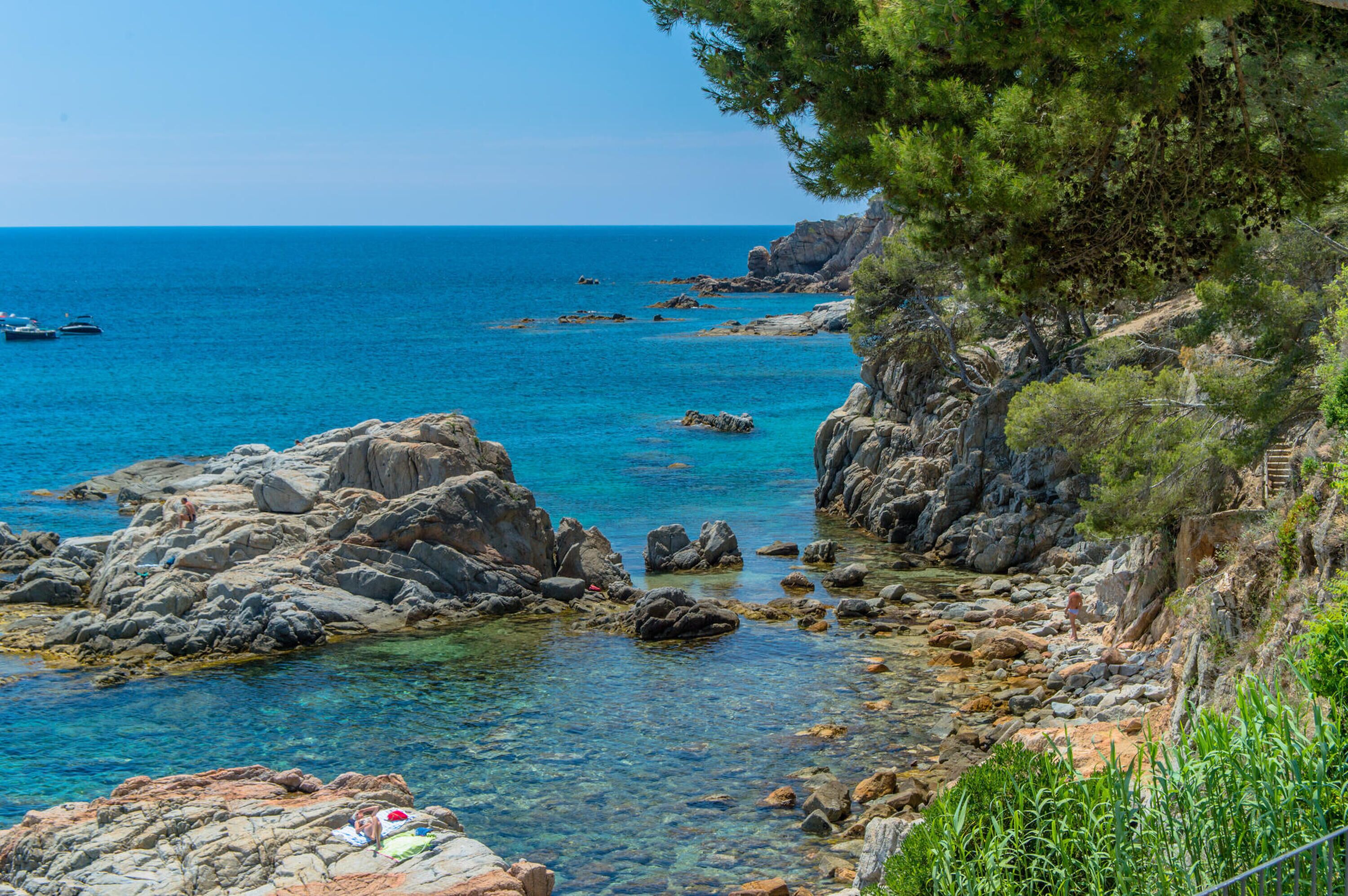 The Costa Brava, literally the wild coast, is very popular. The beautiful surroundings with small bays and large beaches are inviting. One of the few places in Spain where one can enjoy green surroundings with many pines and oak trees. In less than 5 minutes drive you will find Palafrugell or Begur, typical Spanish villages, where you can shop for hours and where you can enjoy a drink on one of the old village squares. For a lot of fun you visit Playa d’Aro where a nice fairground and a splashing water park are a sensation for the kids.