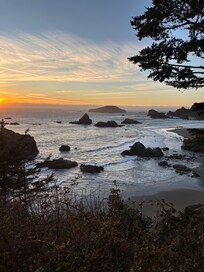 I must say that staying in this slice of paradise has set the bar pretty high for everyone else. Where do I begin? The view! We made a concerted effort to sit outside and drink our coffee every morning and cap off the day with an adult beverage of choice in this view. It is a spectacular view of the Pacific Ocean in all its glory. Water as far as the eye can see. Waves crashing into the rock formations over and over. And a sunrise or sunset that is unmatched. You have several seats to chose from and sit and enjoy. I then move on to the unit itself. The cleanest unit weâve stayed in so far off highway 101. The attention to detail and the thoughtfulness of the hosts really make the difference. And in between the view of the ocean and the unit itself is a beautifully landscaped courtyard with a variety of colors. Very spacious and it even has electric car chargers for whoever has one. If it were up to us weâd give it 10 out of 5 stars.