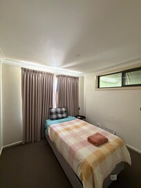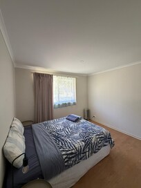 Large house not far from Woden Westfield. There is a drive way to park in, but there's also a granny flat out back which made it awkward being parked in by the other people. The house is basic and good option if you just need basic accommodation. Rooms are basic but comfortable. There are no fans in any of the rooms, only an air conditioner in the dining/kitchen. It wasn't too bad when we visited as it was cool at night. Will be a big issue if it was hotter.This is not really suited if you are planning on relaxing at house with family and friend. The house can sleep 8 people, but has 4 wine glasses, 20 knives and 2 tea spoons. Kitchen table only had 5 chairs, 2 of which has broken backs which is abit of a safety issue if you accidentally leaned back. Couches are placed in a long row - 1 couch faces the tv and the other couch faces the wall, so you can't really chill and speak to each other. There are spider webs all over the doors and has been there for a long period of time. More thought is needed to make this house comfortable to relax in. However, if you just need bare basic accommodation, this is a decent choice for the price you pay
