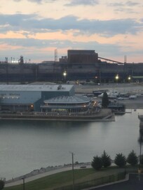 Cheap rooms, located next to a park and a scenic steel mill that makes the air smell like rotten eggs. Rooms are big but not well thought out. Typically you would want your "Lake View" rooms to not have the beds pointed the opposite direction of the "lake view". Room was non smoking but smelled like a chain-smoker had been living in it. No amount of air freshener would help. Body wash bottle in the shower was empty which means they do not refill after each guest. No soap to wash your hands with at the sink besides a Shampoo/Conditioner combo. Questionable stains all on the walls and carpets had not been cleaned in a while. Beds felt like the springs were going to lodge themselves into my back all night. Coffee machine in lobby cost $7 for a Mocha with no Mocha. Beach was shut down to swimming due to high bacteria count. Found out it's considered one of the most polluted beaches in the US. Staff were nice and rest of the facilities seemed okay. This place has the potential to be good but it needs some real work first.