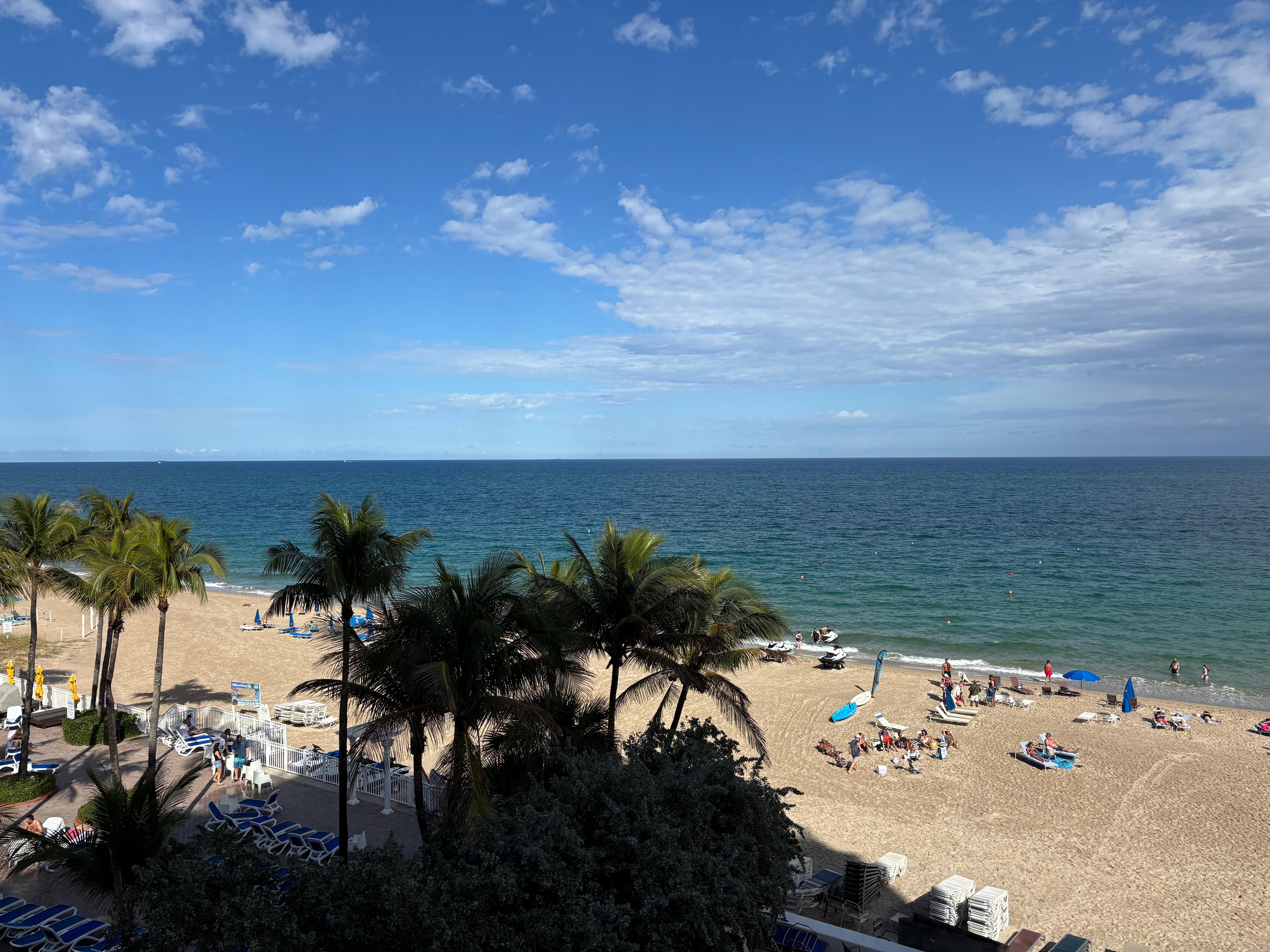 Ocean view/beachfront with balcony on its own private beach (Fort Lauderdale), Very well furnished, 2 queen bed, table with 4 chairs, coffee maker, microwave, refrigerator, hair dryer, safety box and complementary amenities, including towels, shampoo and conditioner, soap, , coffee are provided . The place has a large heated pool, tiki sports bar/ restaurant, pool cabanas available, new five star Italian Restaurant, beauty salon, and much more. The unit has a fantastic ocean view balcony were you can enjoy a beautiful sunrise or rest in the afternoon from a busy and sunny beach day. Walking distance to many shopping plazas, restaurants and entertainment. Valet parking $18 per day unlimited in and out, umbrellas and lounges available for rent from hotel, no charge for pool lounges. Coffee shop in lobby. Also you can enjoy with the local activities, such as local free trolley, jets skis, paddleboards, kayaks, bike rentals, dive shops, water taxi, sports bars, nightlife entertainment, fishing pier, deep-see fishing and parasailing, just to mention some.