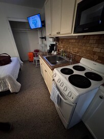 The inn itself is a bit outdated, yes, but still comfortable, quiet (other than some road noise), and very friendly. Our room was studio-style with a full fridge, stovetop, and sink, which was super convenient. They even provide beach chairs and towelsāsuch a thoughtful touch.