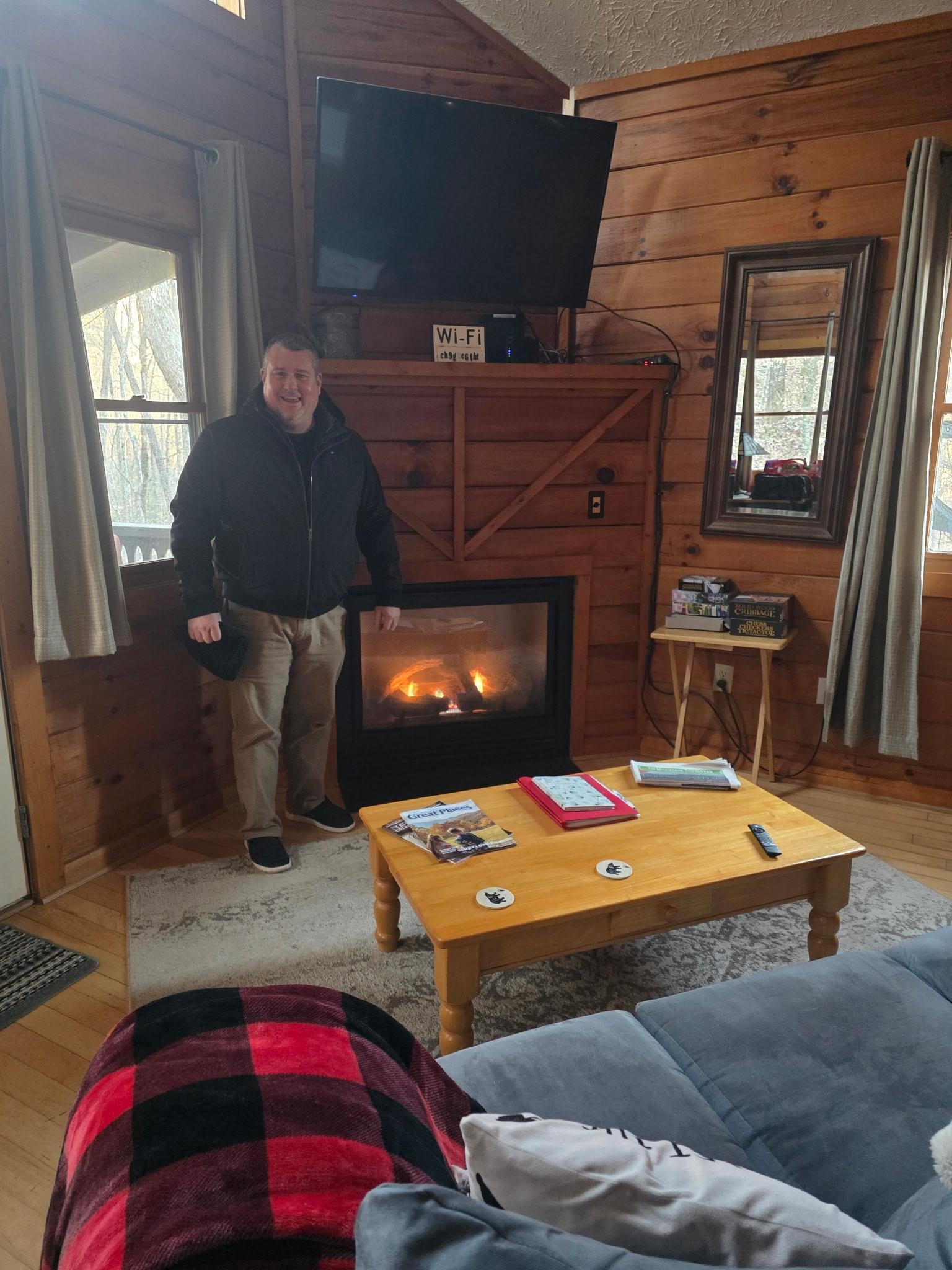 The cabin was cozy and very quiet! Very convenient to all the shops. We totally enjoyed our stay. The weather wasnât too friendly but we still enjoyed our trip.