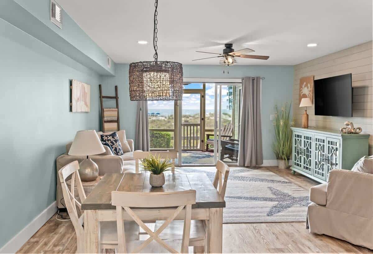 Sobald Sie durch die Tore von Wild Dunes fahren, werden Sie sich sofort entspannen. Die 34 Beach Club Villa bietet Meerblick auf die überdachte Veranda und die Mastersuite im zweiten Stock, eine schöne aktualisierte Küche und WLAN. Dieses Haus ist wirklich für ein Zuhause-Erlebnis. Draußen ist eine schöne überdachte Veranda und Zugang zum Pool des Beach Club. Mit viel Liebe zum Detail wurde ein Strandhaus geschaffen, an das Sie sich erinnern werden und zu dem Sie immer wieder zurückkehren möchten. Mit drei Schlafzimmern und drei Vollbädern bietet dieses Haus Platz für bis zu acht Gäste. (1600 Quadratfuß).