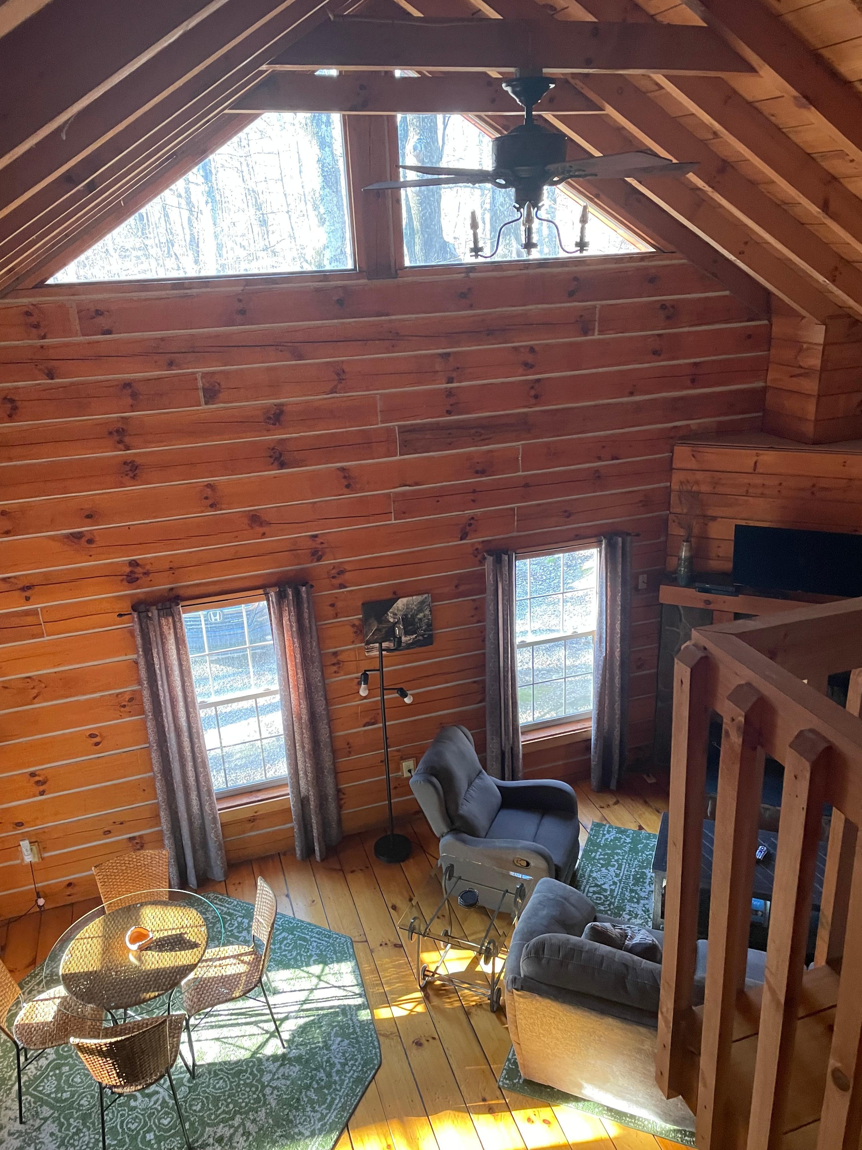 Die Getaway-Kabine ist eine sehr geschlossene Kabine und bietet ein geschlossenes Schlafzimmer mit einem Doppelbett und ein Loft-Schlafzimmer mit einem Kingsize-Bett und einem Doppelbett. Diese Kabine verfügt über einen Holzkamin, eine große Küche, Gewölbedecken, einen HD-Flachbildfernseher mit Satellit, Zentralheizung und Luft, ein aktualisiertes Dekor und einen Whirlpool für 6 Personen, der sich direkt neben einer von zwei Veranden befindet. Zusätzlich verfügt diese Kabine über einen Gasgrill und einen riesigen Feuerring im Freien. Im The Getaway können Sie spüren, wie der Alltagsstress nachlässt, während Sie sich in Ihrem privaten, ruhigen Kabinenurlaub entspannen.