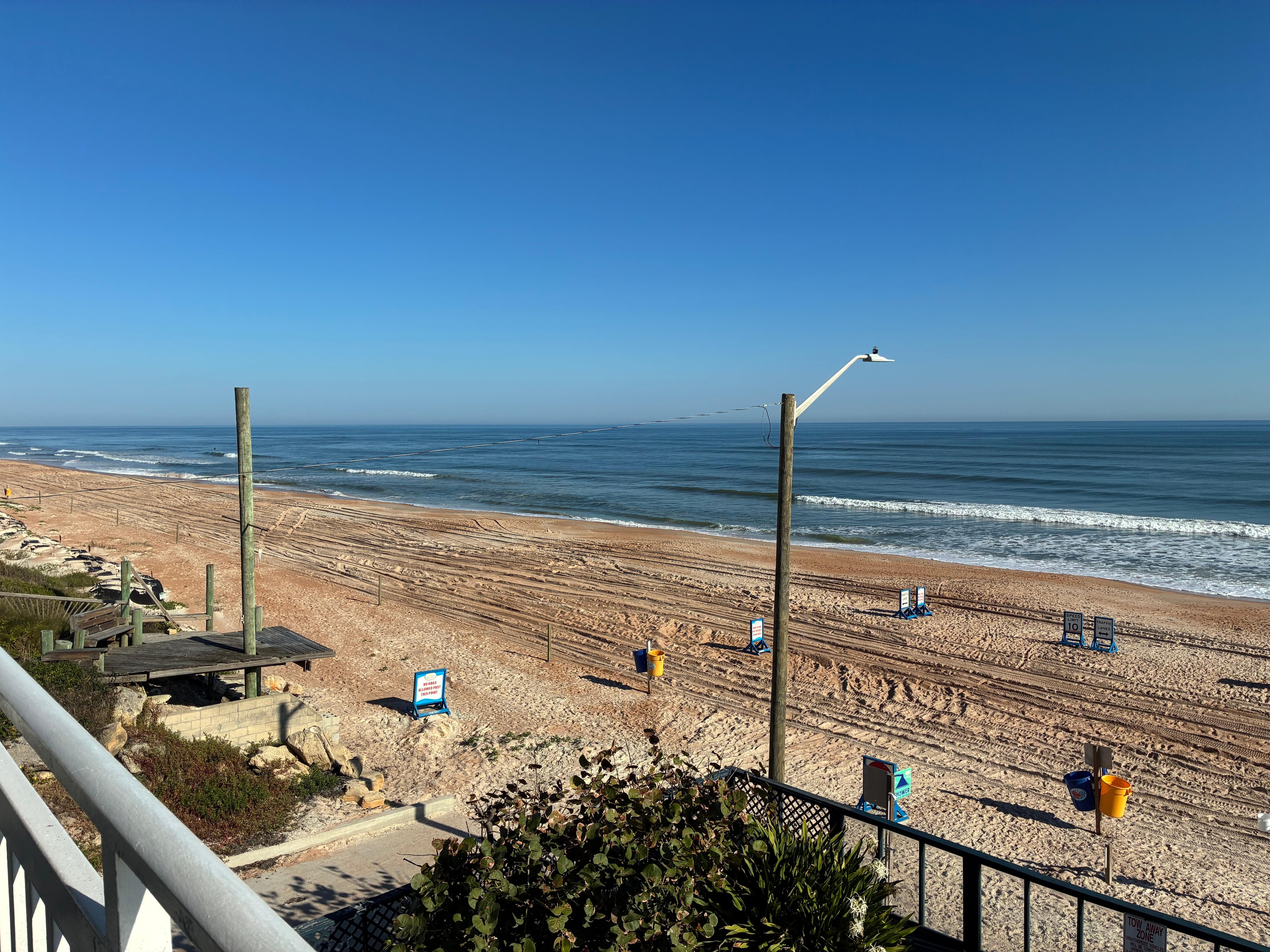 This studio has direct beach front views and is 389 sq ft. The building has wooden steps to the beach directly in front of this unit. Whether you look left, right, or straight ahead the ocean is what you see. Don’t be fooled by misleading ads. There is a limited number of units in the building (12) that have balconies that directly face the ocean, and this is one of them! Don’t be disappointed, If comparing listings, always ask if the unit is DIRECT VIEW OCEANFRONT. Why look at the ocean from a side balcony, when you can rent the real thing! Besides linens and bath towels, Beach chairs, beach towels, beach tent, beach mats, and a beach umbrella are included in unit for your exclusive use. 10x10 canopy available upon request(stored off property). In addition to cable tv, HBO/Max (just added 8/22), Netflix, Prime channels, and Pandora available. We intend to provide you with the best rental experience possible!