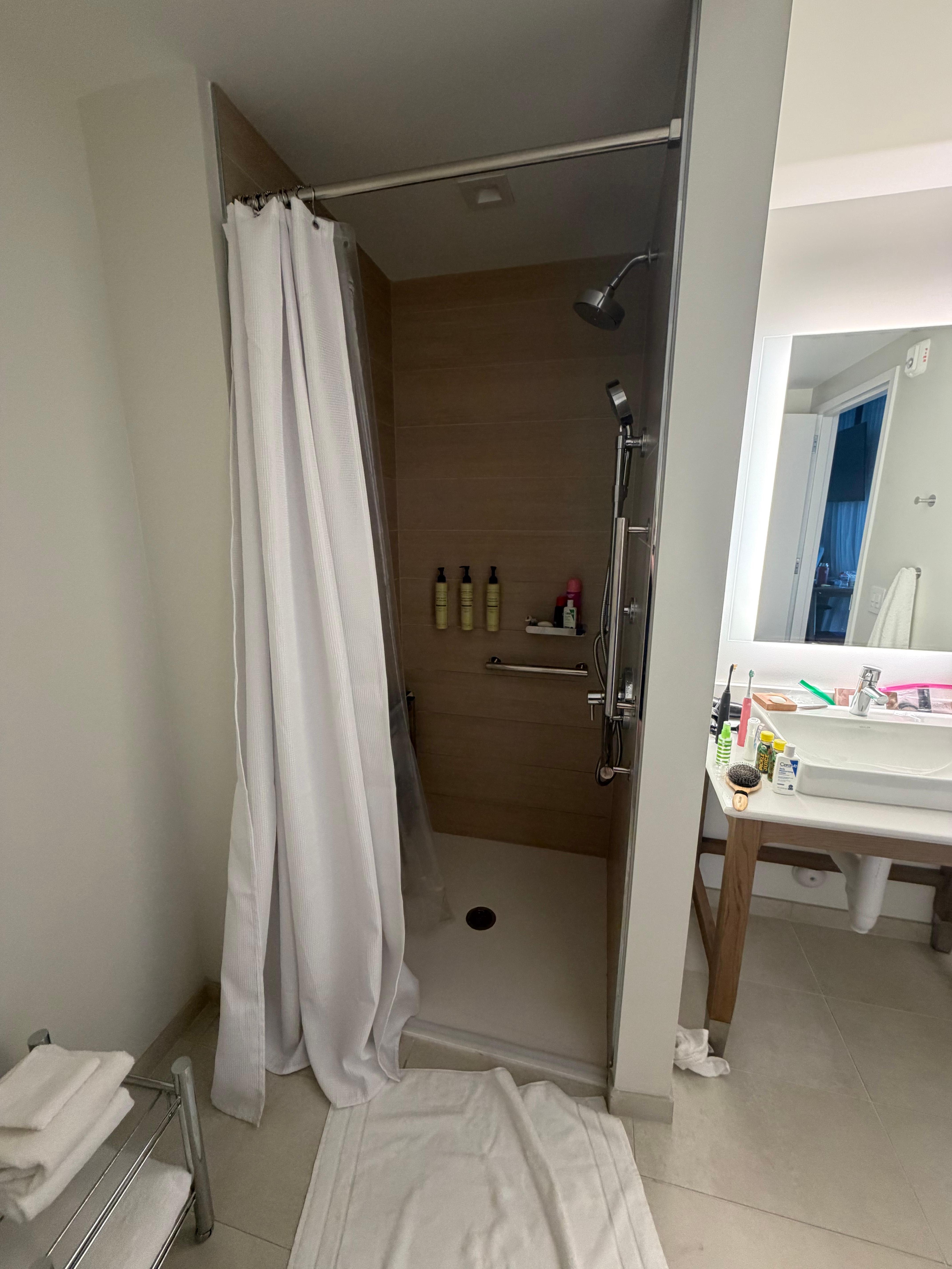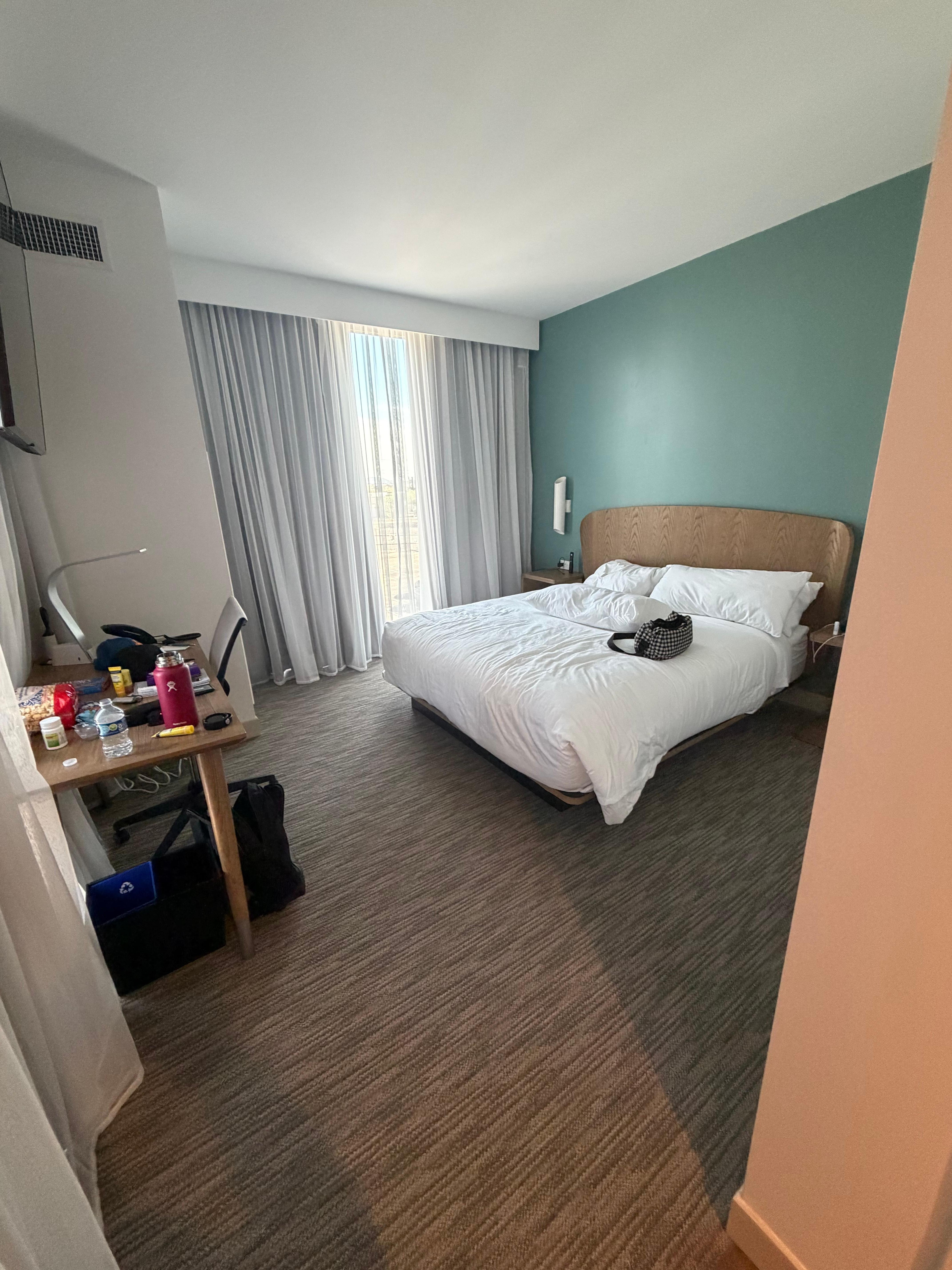 We booked through Expedia and paid an increased rate for a room with a couch and kitchenette. When we checked in, we actually got a worse room than the basic king room. No pullout couch, no chair, no kitchenette (only a fridge), no microwave, stove, etc. We got put in a handicap room with a small shower with a fabric shower curtain (instead of the large glass shower). The staff informed us they were sold out, no other rooms available. The hotel blames Expedia, Expedia blames the hotel. I’m not sure where the money spent on the larger room went?? The pool was cold (it says heated) and the lobby spelled very bad. Overall, the hotel is very nice, but the staff and customer service were very, very bad.
