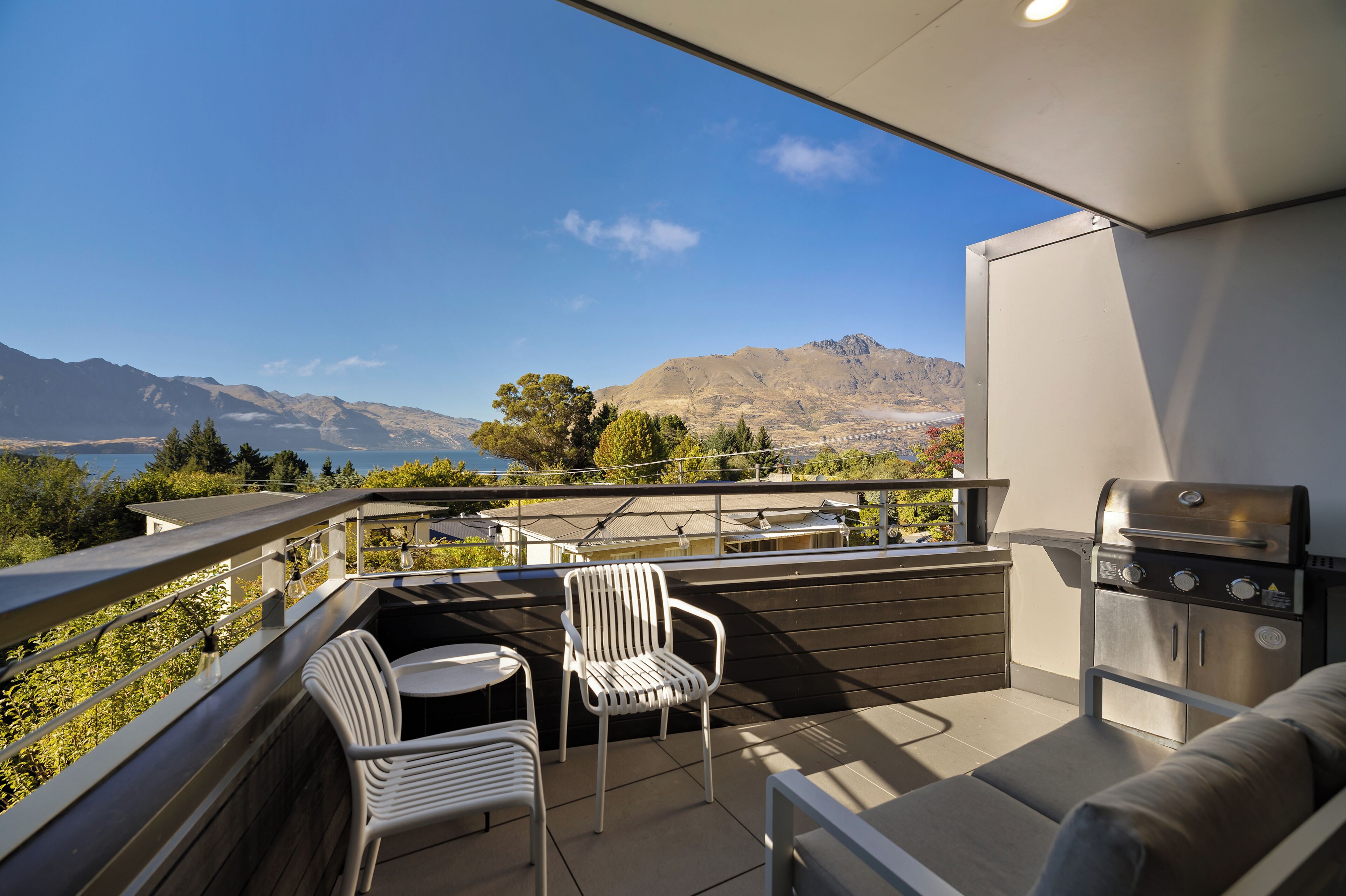 Views of lake somewhat limited by properties in front. Whilst a short distance to Queenstown, roads are quite steep and require a vehicle for anyone that needed assistance or had difficulty walking uphill.
