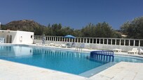 très bon accueil - grande piscine mais beaucoup de transats cassés - route passante à proximité mais oliviers entre la route et l'hôtel - 4 ou 5 kilomètres pour aller à la plage la plus proche - le trajet à pied n'est pas agréable car une portion de 4 voies à longer - station de bus à proximité de l'hôtel