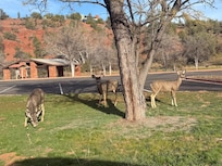 The studio space was perfect for two of us — and the welcome note and local pastry treat we received a great added touch. We went to Sedona during a busy New Year's week, so staying in West Sedona away from tourist madness was such a pleasant retreat. We were able to cocoon up in the cozy king-size bed on rainy days, and enjoy the neighborhood trails when the rain broke. We came prepared with food items we knew we could cook in the microwave or toaster oven, which meant the kitchenette was adequate for our needs. We originally found the space becauae it was dog friendly, but we we didn't end up bringing the dog — we look forward to returning next time with him. There was also a great curated host basket, which proided us a day-trip map for the Grand Canyon. I even spent a few mornings reading and enjoying my coffee bundled up on the lovely deck.