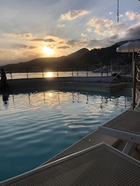 Der saisonal geöffnete Pool empfängt Gäste ab April und schließt im Oktober.
