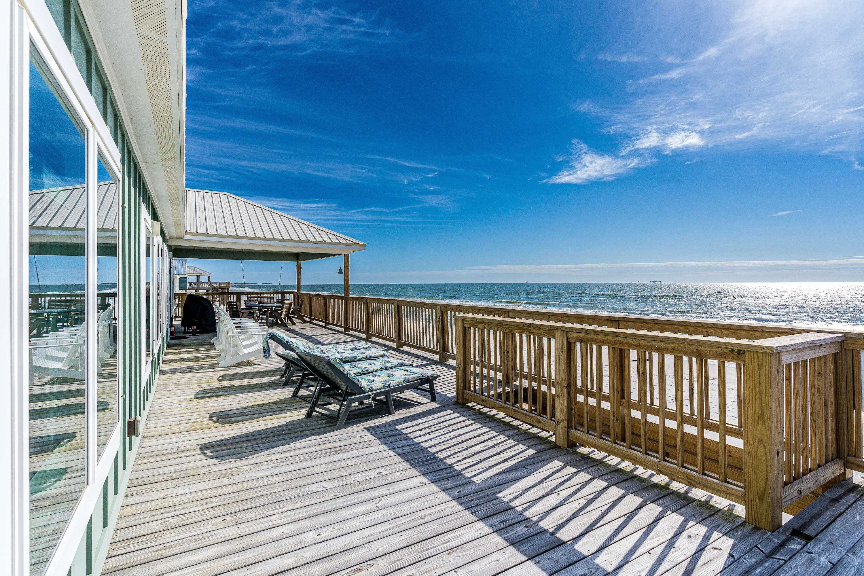 La suite principale est Ă ce niveau principal, avec un coin salon, des portes en verre ouvertes sur le porche blindĂ©, au bord de lâeau, une salle de bain avec baignoire Ă jets et douche sĂ©parĂ©e. A l'Ă©tage, il y a quatre chambres Ă coucher, deux de chaque cĂŽtĂ© de la maison, chaque cĂŽtĂ© avec des baignoires Jack & Jill et 2 vanitĂ©s de chaque cĂŽtĂ©. Toutes les chambres disposent d'une tĂ©lĂ©vision Ă Ă©cran plat avec DirecTV et Internet sans fil. Trois des cinq chambres ont une vue sur le golfe!