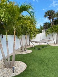 We've had a really good time staying in this small house close to the Beach. Very good equipment in the kitchen and for the beach. Unfortunatelly some things were already broken and there was just 4 chairs (for 6 people) but since a couple of us were usually in the water we made it work out. Beach Towels are in the house, Publix very close but quite expensive so we have used our trips to restaurants to get groceries in Walmart.Since there is not a lot of restaurants open on Fort Myers Beach itself we drove to the restaurants but you have to take into consideration the rush hour off Fort Myers Beach (took us up to 45mins to leave the island).But communication with the landlord was just excellent! He helped us out with information and check in went smooth. No additional charges for bbq grill/pool heat which I thought was very cool.I would recommend to stay there but with no more than 6 people.
