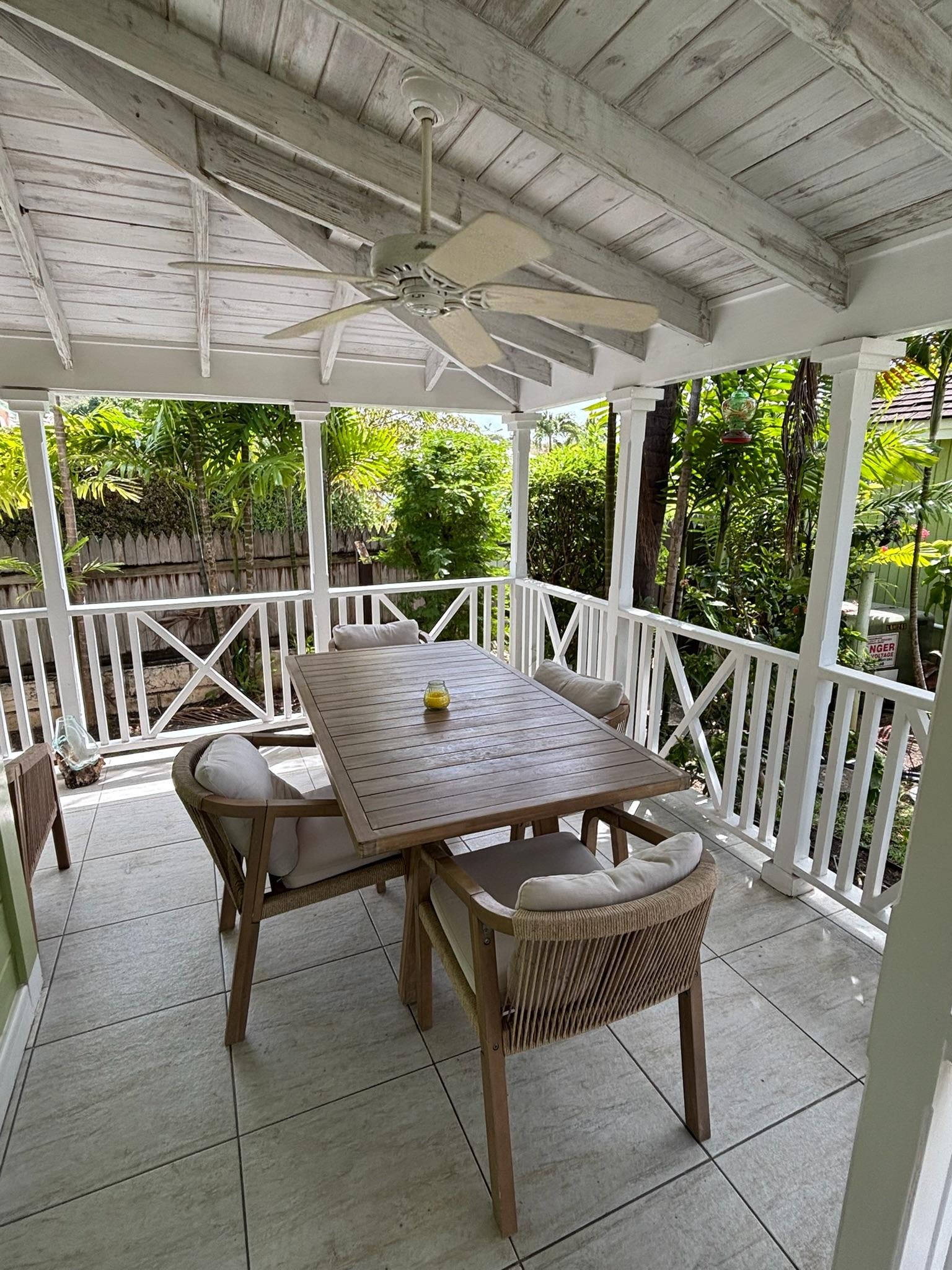 The covered veranda extends to two sides, it is perfect for outdoor dining, cooking on the Webber BBQ or just sipping an ice-cold rum while watching the local wildlife which includes Monkeys, Lizards and Hummingbirds, there is also a great view of the sun setting over neighbouring gardens.