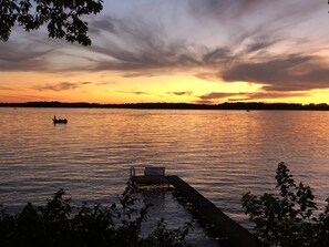 The living room, dining room, kitchen, first floor bedroom and the upstairs master bedroom have lake views and unparalleled sunsets.
