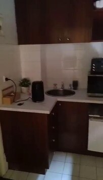 Le petit coin cuisine, pas de plaque chauffante ni de four mais un four micro-onde, mini frigo, couverts, évier et machine à café expresso avec les capsules offertes. Il y avait également du café soluble, du thé et des petits berlingots de laits fournis dans le frigo.