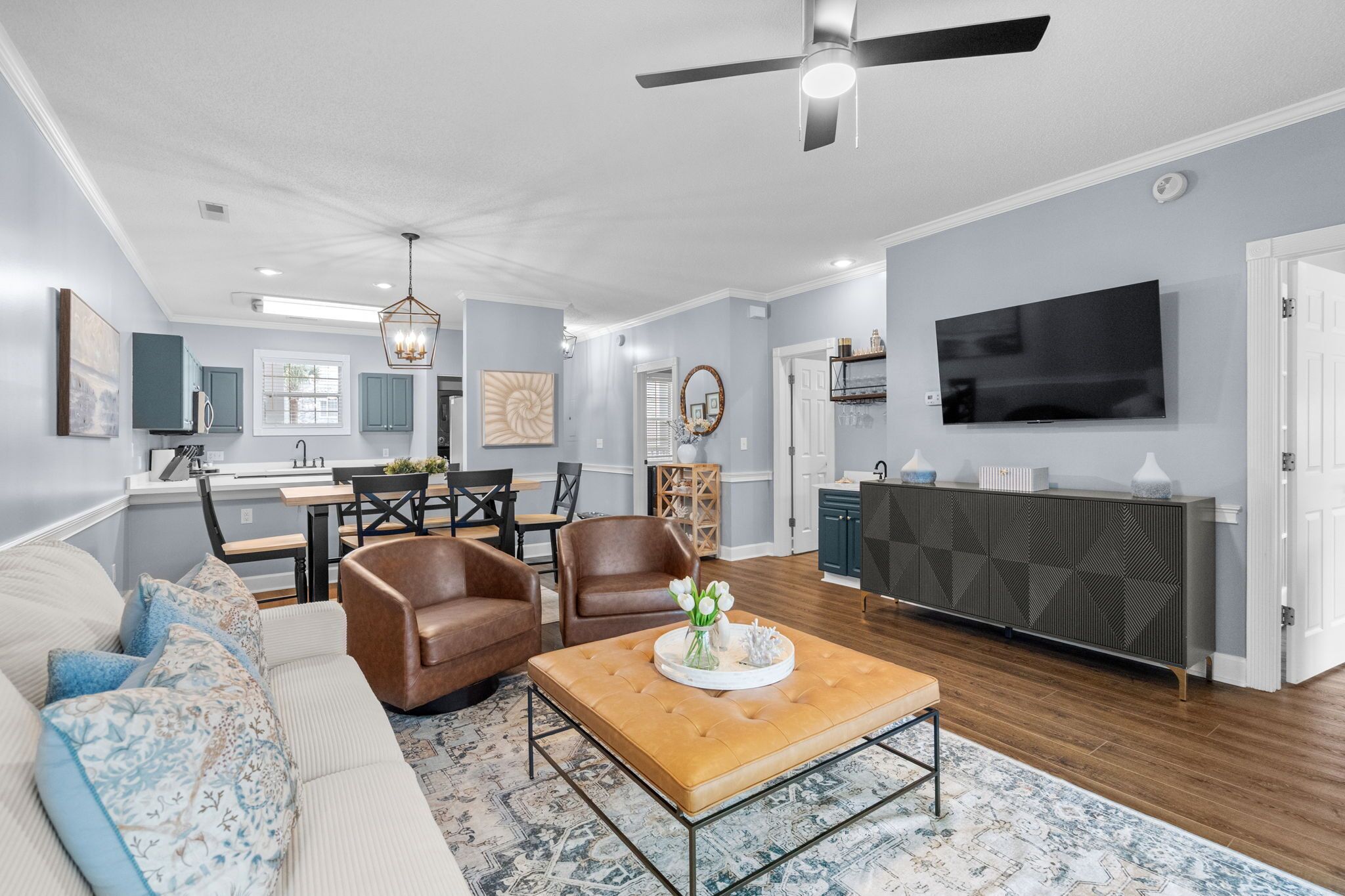 Check in was easy, in a convenient location to attractions/shopping/restaurants, unit needs a good deep cleaning(ceiling fans, baseboards, and chair railing was full of dust), floor left feet black on bottom from first day, master bedroom is overly hot due to no window coverings to block sunlight, would stay again for value in a great location