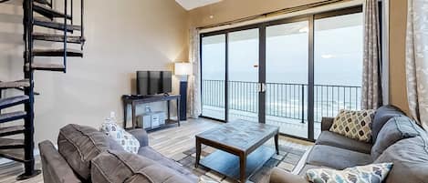 Gulf-front 8th-floor Condo with balcony, pool, hot tubs, & tennis courts