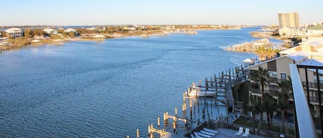 Updated condo with Gulf & river views & pool - across from beach & near dining