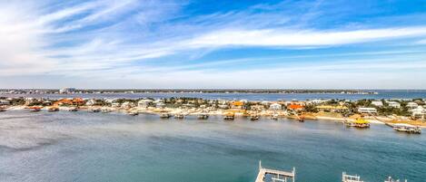 Waterfront, gulf view condo by beach with pool, dock & balcony