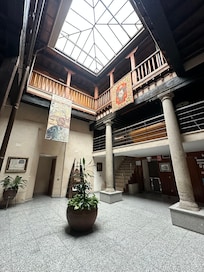 Das Hotel ist in einem historischen Gebäude mitten im Herzen der Altstadt. Das Hotel bietet für 15 Euro einen Tiefgaragenplatz unter dem Hotel an. Das ist super, aber für die Anreise und vor allem die Abreise durch die engen Gassen und in die Garage rein und raus braucht man gute Nerven. Der Empfang war sehr freundlich, der Check In war rasch erledigt. Aufzug ist vorhanden. Unser Zimmer war im 2. Stock. Nicht sonderlich groß, aber alles sehr sauber. Das Bad ist ziemlich klein und beengt, hat erfreulicherweise aber ein Fenster. Klimaanlage ist vorhanden und funktioniert auch - lässt man sie für die frische Luft nachts laufen, braucht man entweder einen sehr gesunden Schlaf oder Ohrstöpsel. Die Betten sind groß und bequem. Nachts ist es (bis auf die Klimaanlage) sehr ruhig. Die Krönung ist die Dachterrasse mit einem wunderbaren Blick über die Dächer auf Kathedrale und Festung - sensationell. Die Dachterrasse ist frei zugänglich und ohne Service. Es gibt Tische und Stühle. Am besten bringt man sich seinen Sundowner selbst mit. Wundervolles Ambiente. Das Frühstück ist mit Service am Tisch und völlig in Ordnung (Spanien Standard). Fazit: top Lage, solides Hotel für eine Nacht. Die Dachterrasse wertet den Aufenthalt auf.