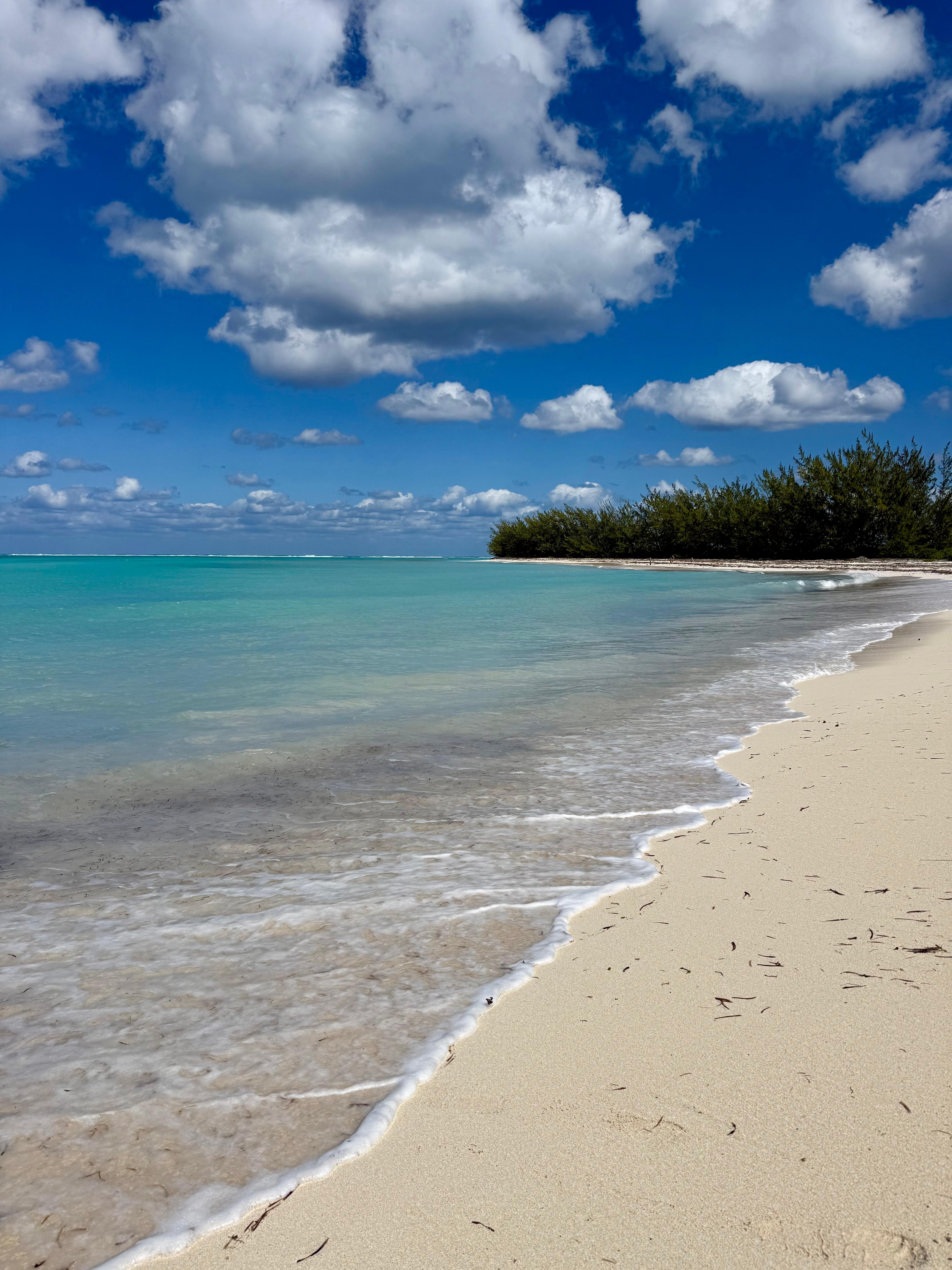 The natural beauty of the protected beach lies both in its seclusion and in the clear calmness of the waters. You may spend an entire week on the beach and not see another person! Even young children can safely enjoy their time in the water as the protection of the beach allows for small gentle waves. The off shore waters are of good snorkeling quality. One may see large conch shells and starfish, and if you choose to snorkel farther down at Three Mary's Cays you can see tropical colored fish swimming near the small patches of coral or even an occasional stingray! The powder white sands of Pumpkin Bluff Beach silently invite you to meander down the beach as you watch the sunset; hues of golden, orange and pink sinking into the Caribbean waters.
