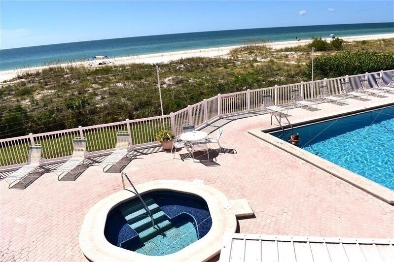 This is a great property! You can walk out the back door, down the spiral staircase, and you are directly on the beach. The beach is beautiful white sand. The property includes beach towels, great beach toys, lawn chairs, and a shade you can set up, which was really useful for us. Very clean property throughout, beds were super comfortable. Really excellent view with plentiful windows. Smart TV lets you login to your account on different streaming platforms. Washer and dryer were so handy. Really cute interior design. We loved our stay and canât wait to return!
