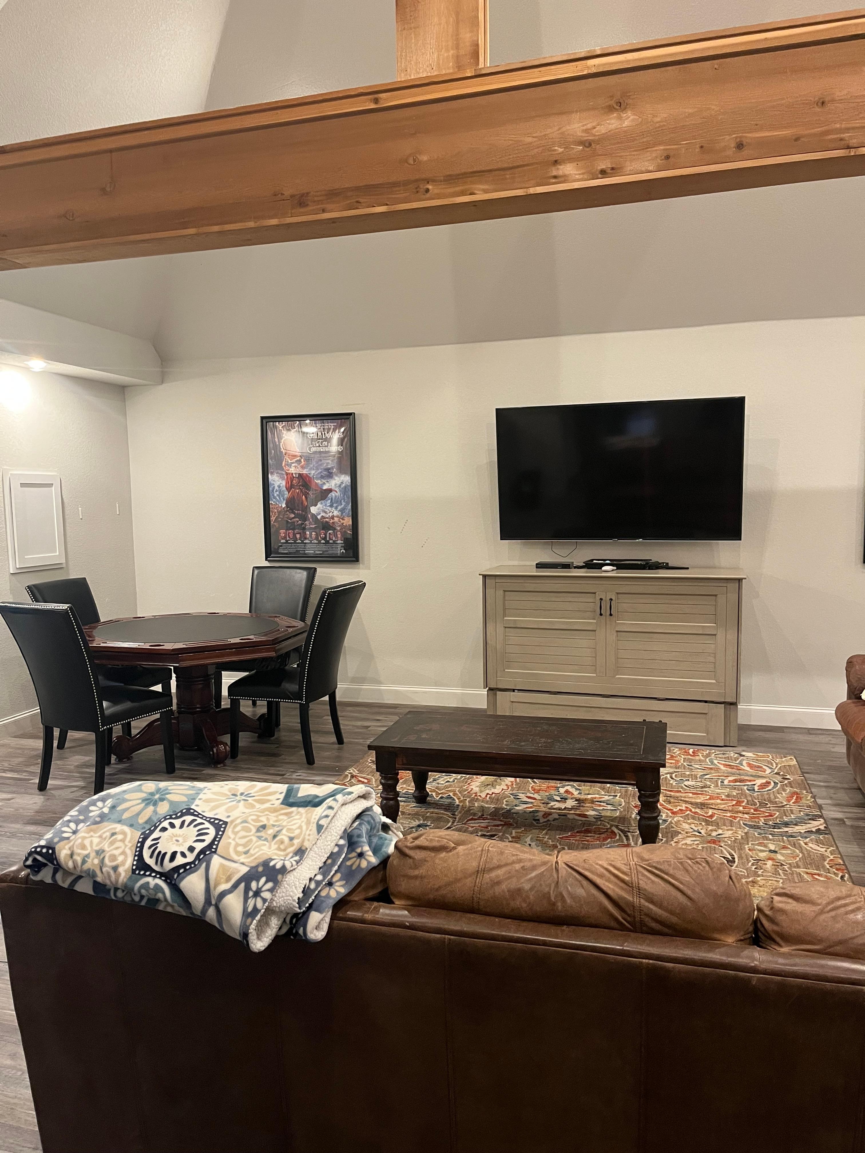The detached gameroom was brilliant. Ping-Pong, shuffleboard, air hockey, 2 sofas, card table and 2 murphy beds. In the house, all the bedrooms have floor space for extra mattresses.