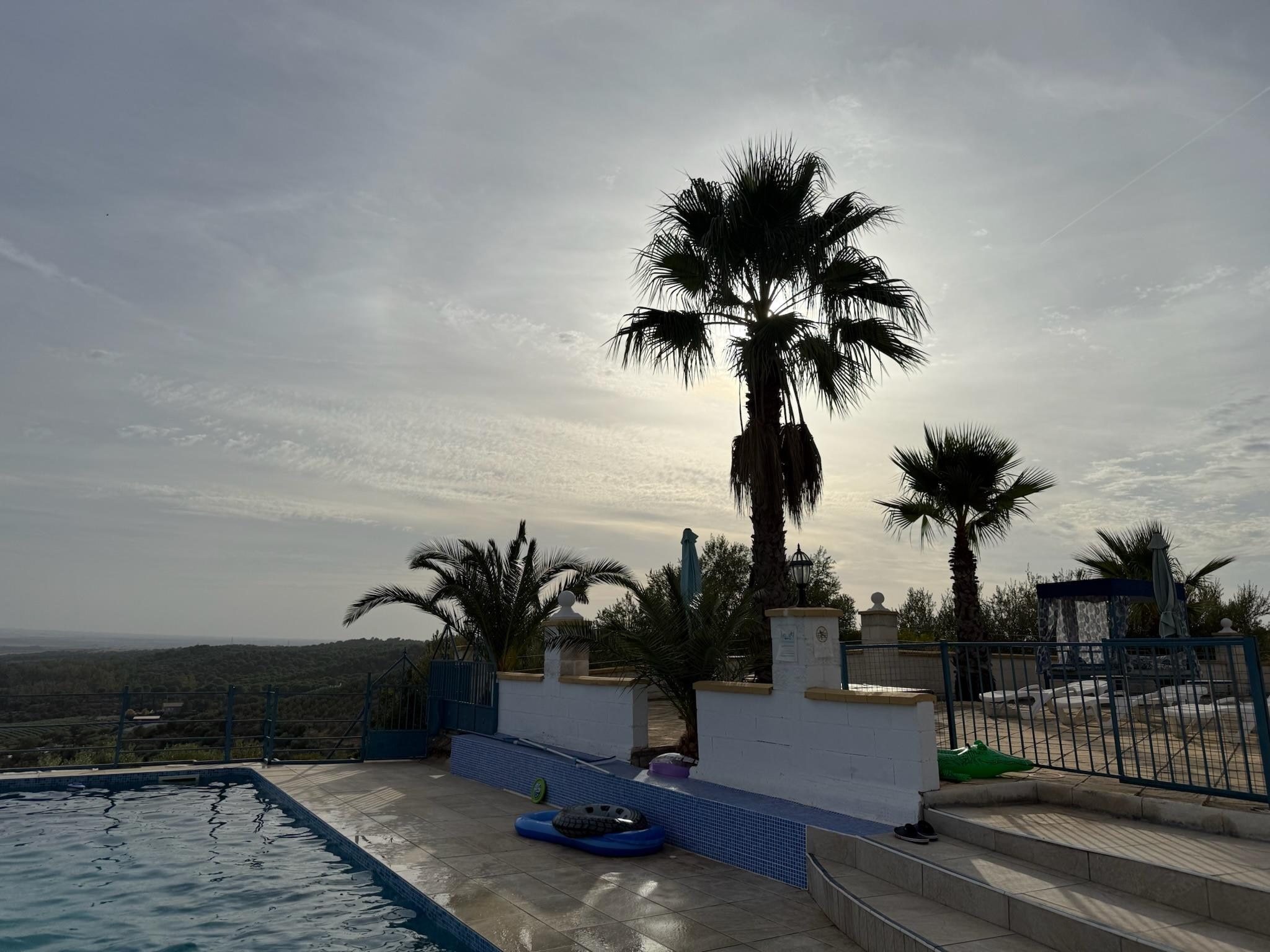 Chalet exclusif de 350 m2 habitables, entouré d'oliveraies et d'orangers, offre une vue imprenable sur la campagne environnante. La maison généreusement coupée offre 4 grandes chambres chacune avec un lit double et un lit simple, une armoire encastrée, la climatisation - deux chambres ont un accÚs direct à leur propre terrasse couverte. Une autre piÚce d'accÚs pour deux lits simples. La maison dispose de deux salles de bains avec douches, l'une avec jacuzzi, une grande cuisine américaine entiÚrement équipée, un grand salon de 100 m2, des arches et une cheminée. La maison est bordée de trois terrasses couvertes et offre également une grande Freiterasse avec des palmiers et des fontaines. Attaché au chalet est une grande piscine équipée de chaises longues, pergola, barbecue et installations sportives. Encore une fois, avec des vues uniques sur les environs. Ici vous pouvez profiter de vos vacances dans la nature et la tranquillité.