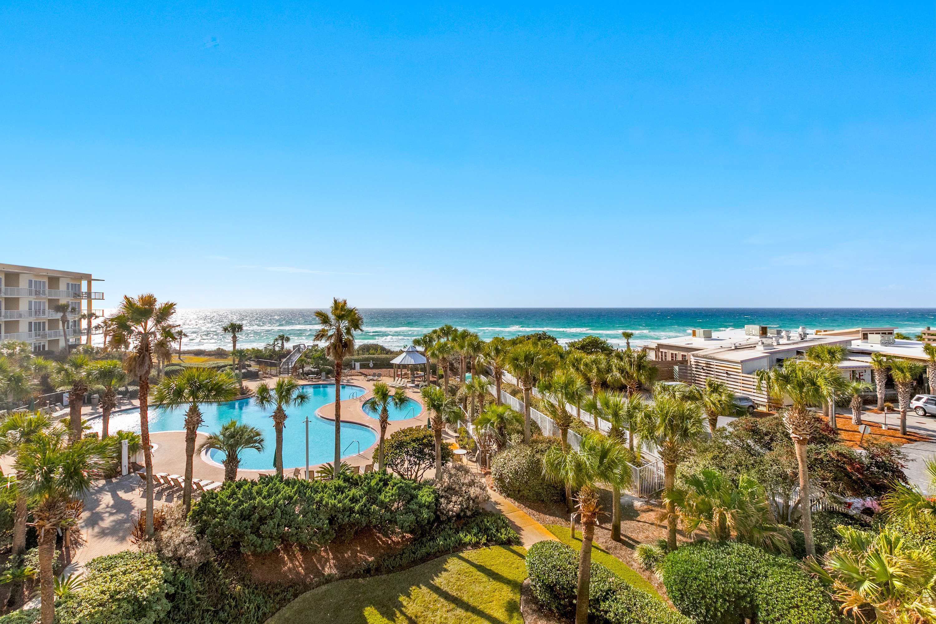 • Ground-Floor Location: Easy access to community pools, hot tub, and private beach.