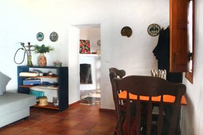 Das Haupthaus besteht aus einem Raum, der in drei Bereiche unterteilt ist: Wohnzimmer, Schlafzimmer und Küche. Keine unnötigen Geräte, sondern alle Grundlagen, die vor über 100 Jahren vorhanden waren, mit spürbarem Zusatz von WLAN, einer Waschmaschine - und natürlich Strom, fließendem, warmen Wasser, Bad usw. Somit kann man das Gefühl haben, wie das Leben in jenen alten Zeiten hier gewesen ist, als der gesamte Lebensunterhalt aus der umgebenden Natur und dem Meer stammte.