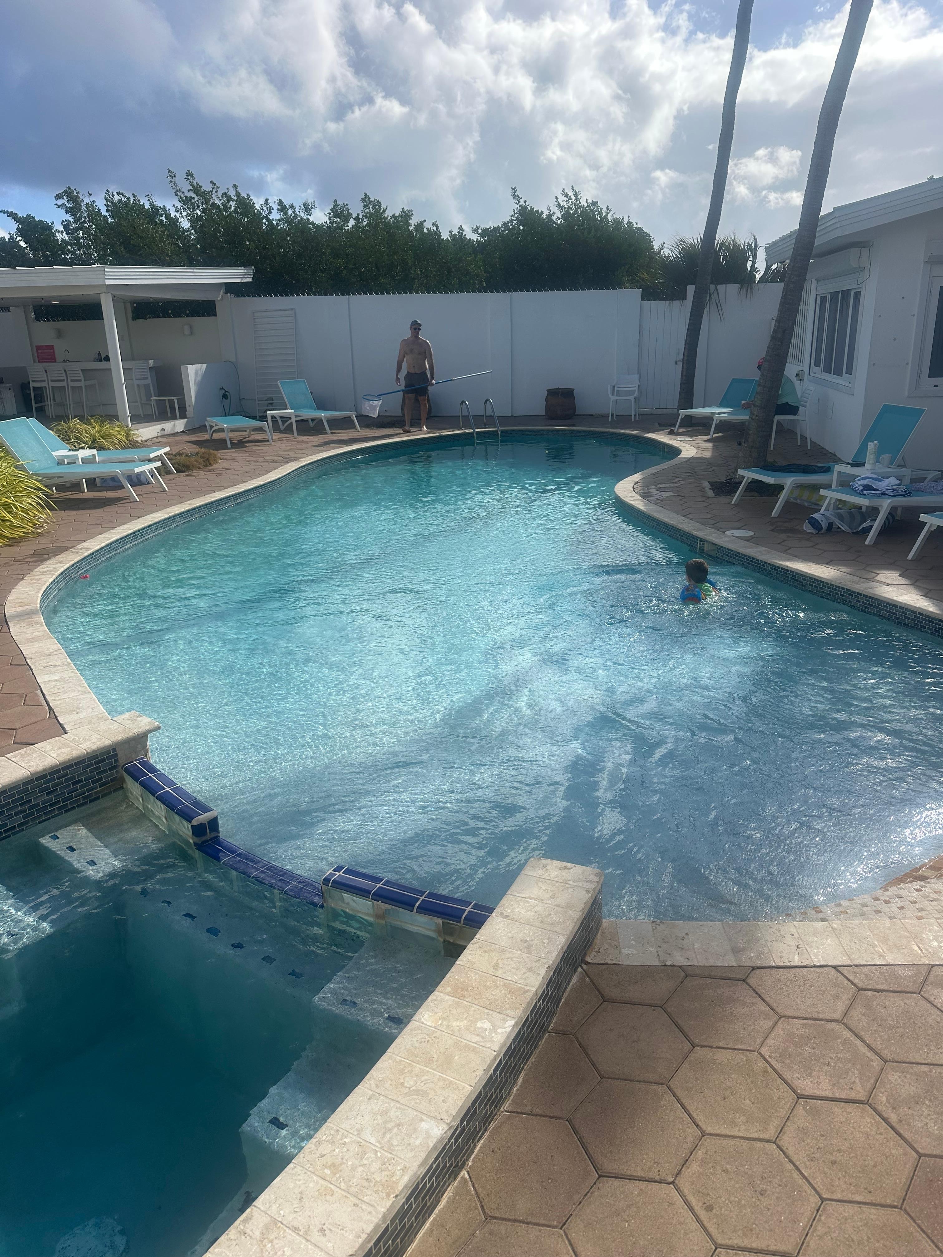 No island vacation is complete without booking some valuable time outside on your own private veranda. Here, you will uncover a remarkable resort-worthy pool, surrounded by lounge chairs and landscaping. In addition, there is a dining area and bar with an outdoor sink. Just imagine how wonderful it would be to dine al fresco, as you splash away your days playing under the sun and retire each night with a late-night dip beneath the stars!