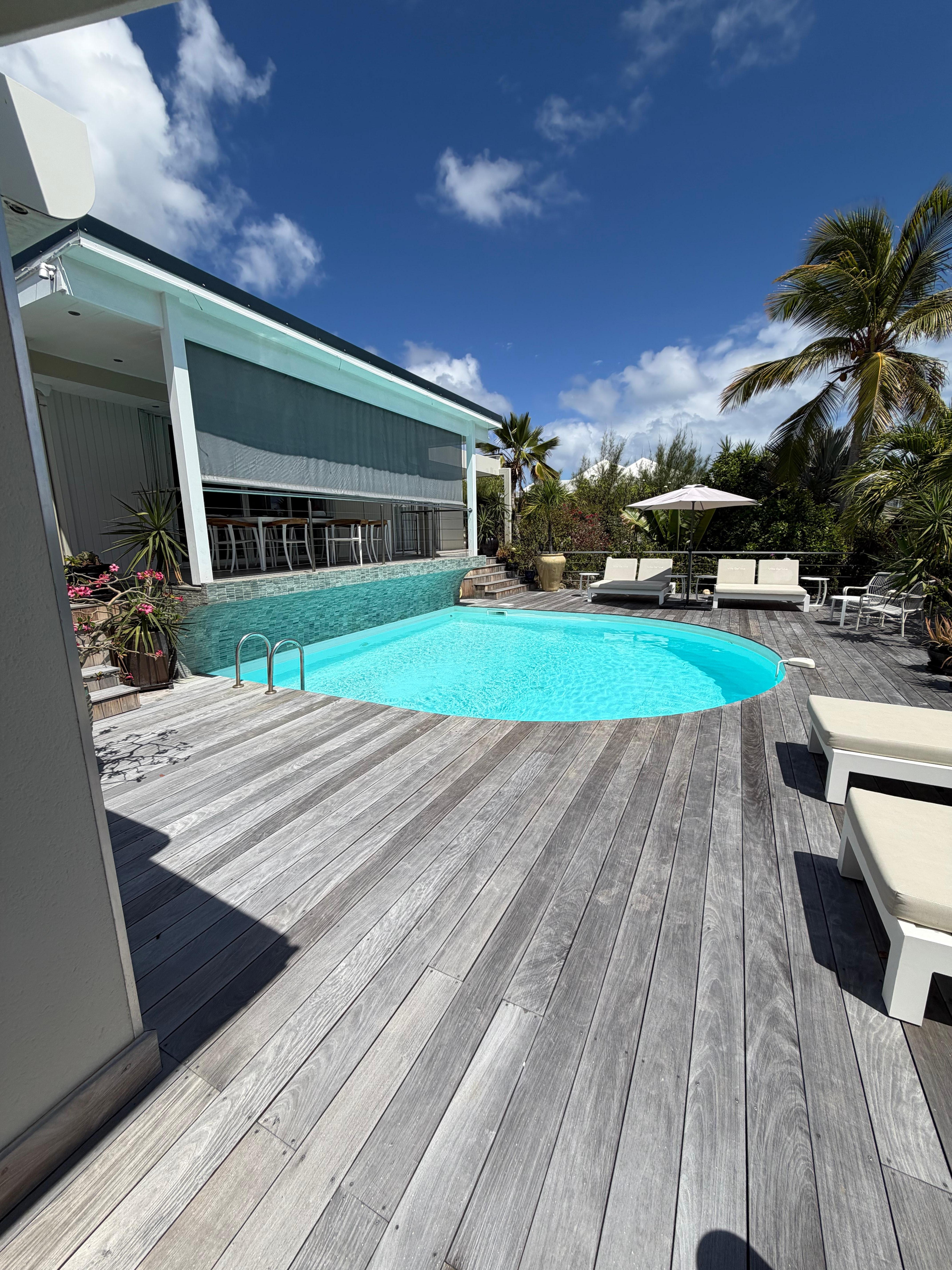 La VILLA'BELVUE est un petit coin de paradis, nichée sur les hauteurs de la célÚbre BAIE ORIENTALE, vous y trouverez une vue époustouflante sur SAINT BARTHELEMY et sur ce magnifique village coloré typique des Antilles. A 350 mÚtres à pied vous serez sur cette superbe plage de sable blanc, la plus grande de ST MARTIN. Les commerces sont à 3mn à pieds.