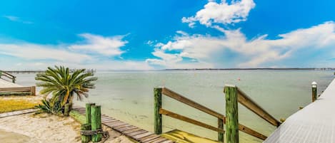 Condo with partial bay view, onsite fishing dock, beach access, & shared pool