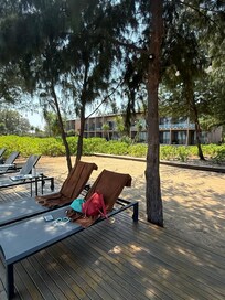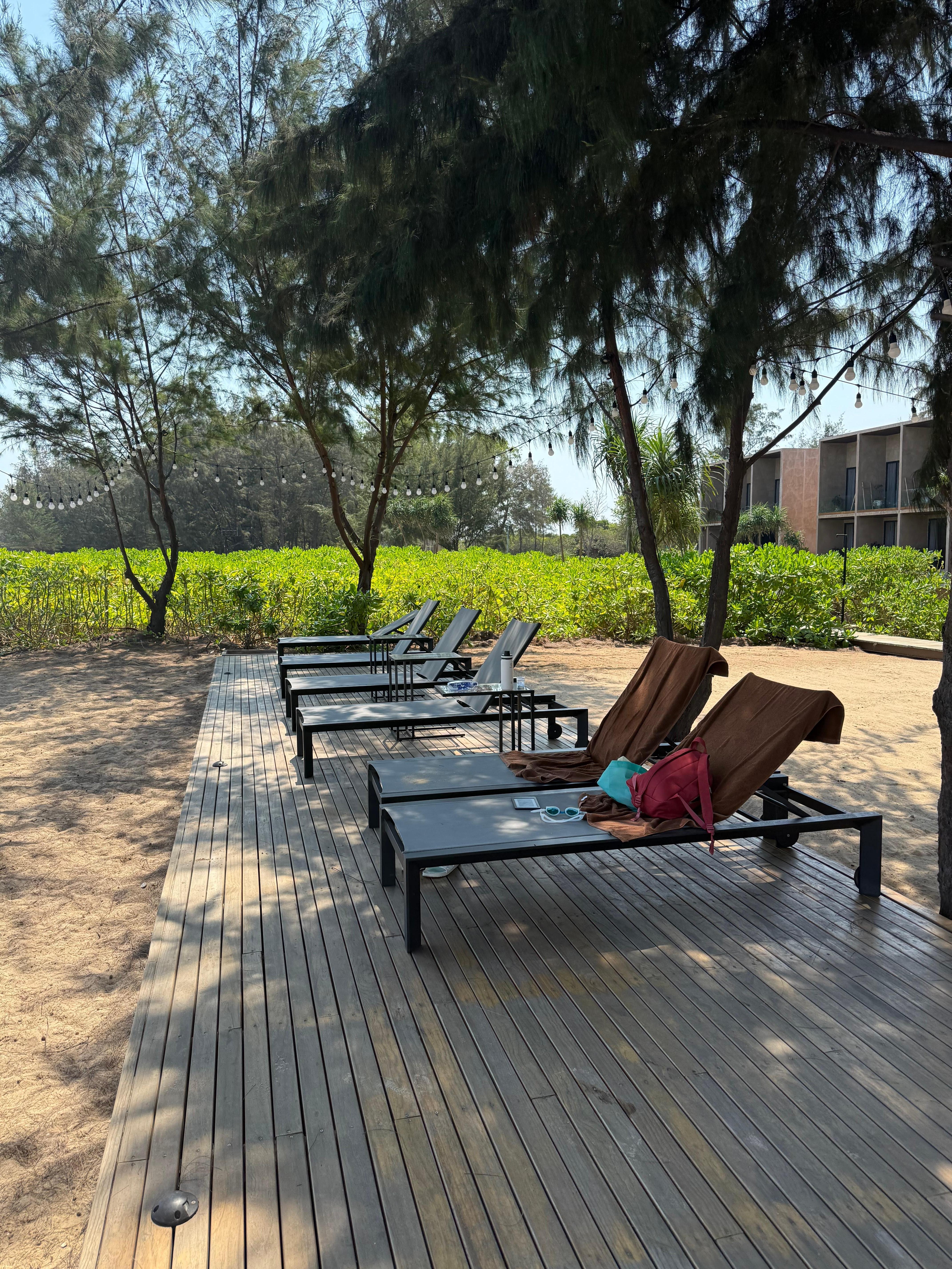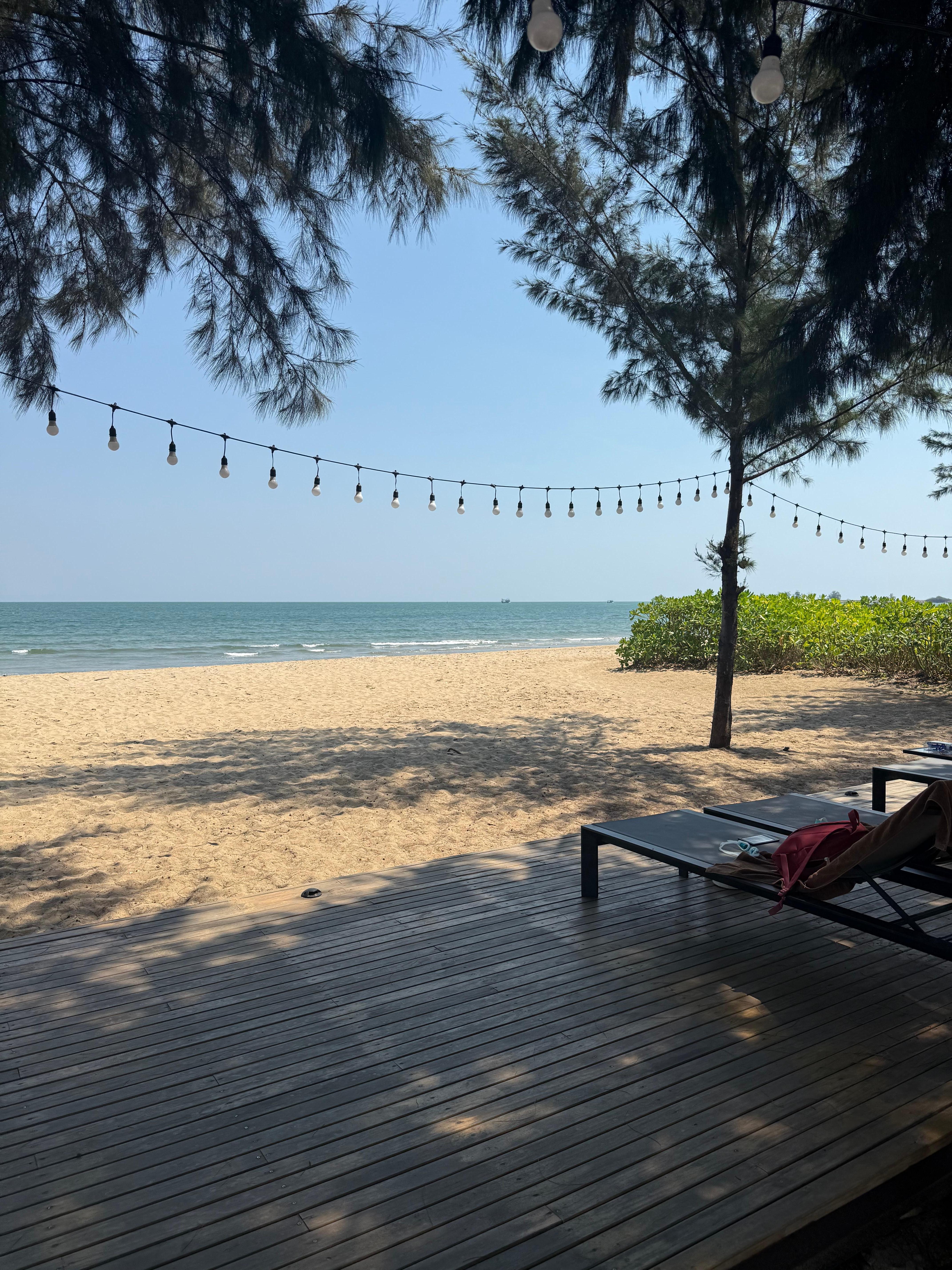 Beach - it is nicer than expected (from google picture to google street view). Quiet and serene. No vendor and not too much traffic. The wave is generally clam. 6 beach chairs under the tree (you get shade the whole day) in front of the beach. Also there are 3 window glass box with AC. You can have breakfast or chill in the afternoon with seaview if you like AC and no mosquitos.