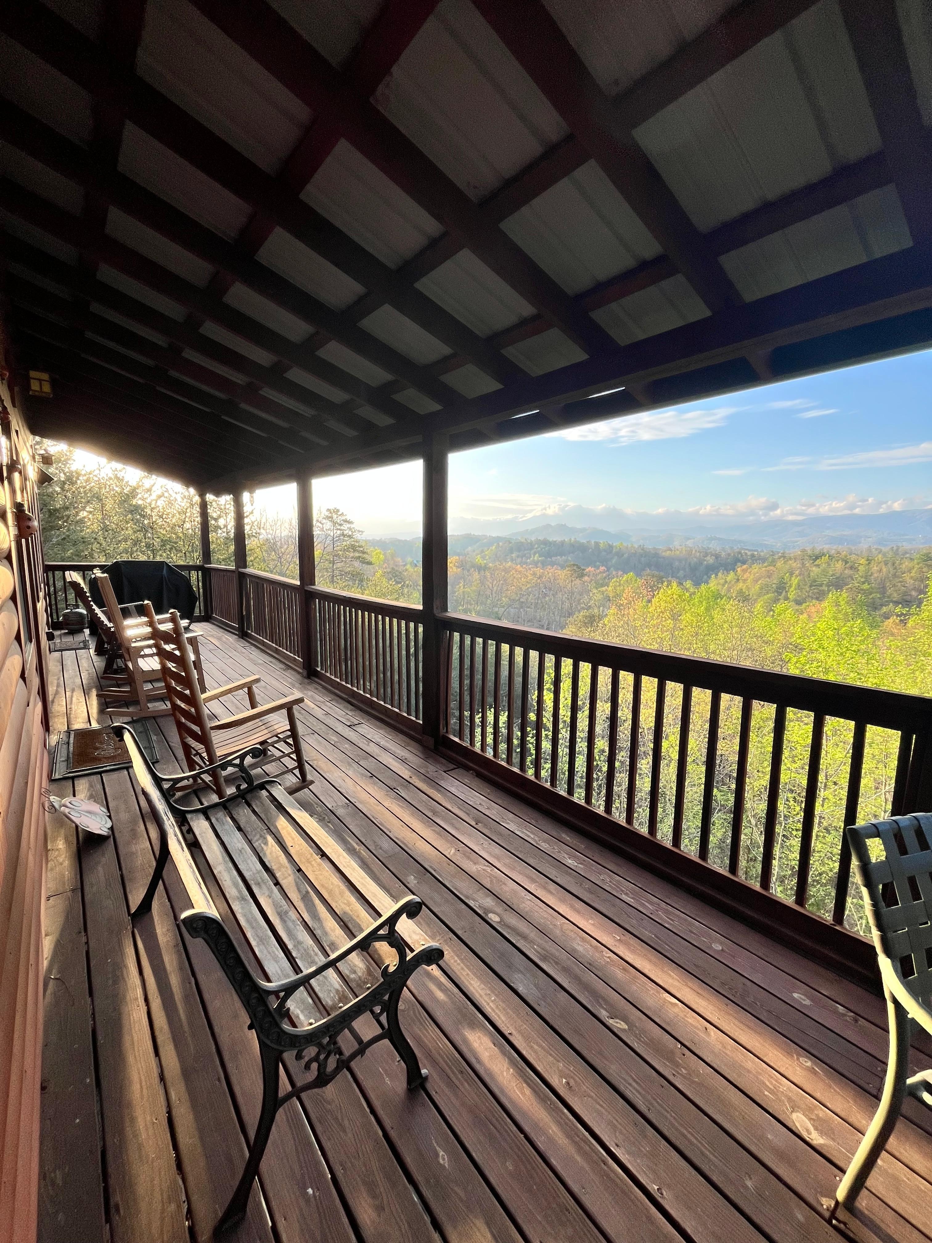 Week long family vacation to the Smoky Mountains and this cabin helped make it a great time. Great location. Far enough from the parkway to feel secluded but close enough to the parkway to still be convenient. The view off the back deck is amazing! Pictures just donât do it justice. If you have a guest in your group with mobility issues this cabin is perfect. No stairs to enter cabin and a bedroom on main floor with bathroom equipped with grab bars.