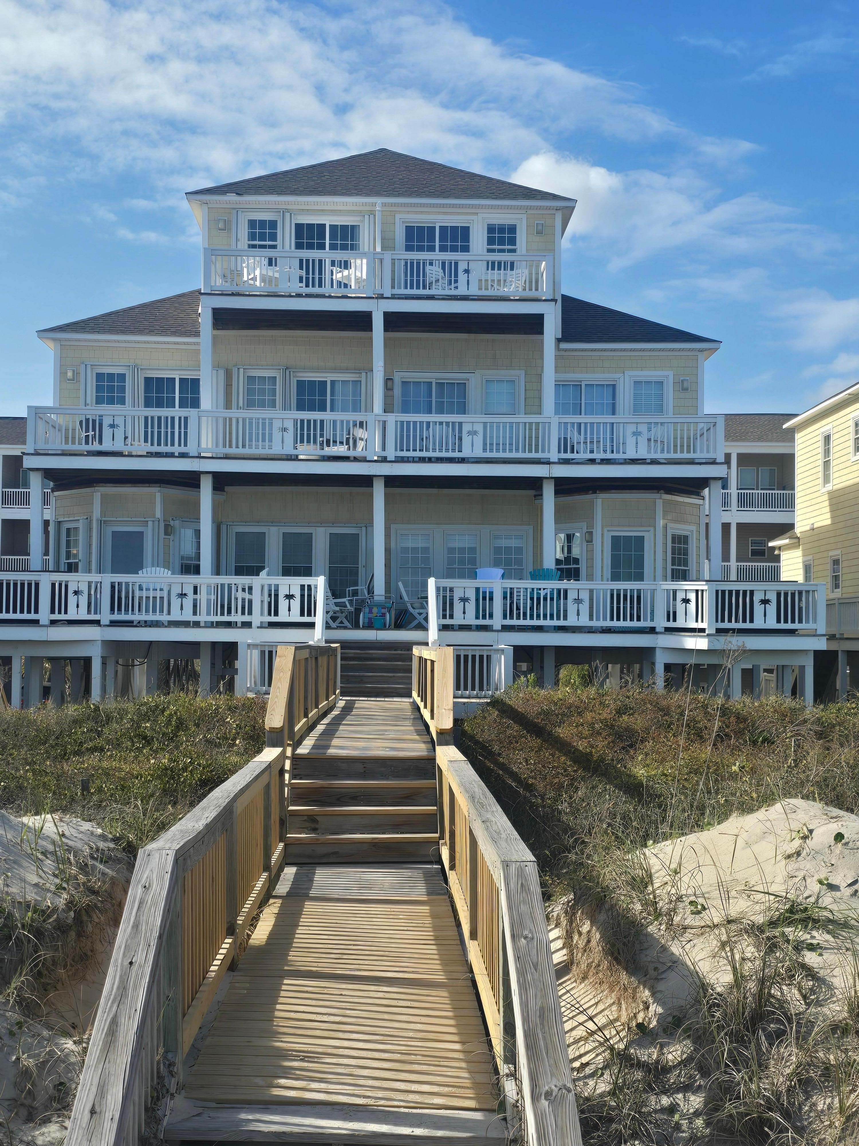 Bienvenue Ă Bird's Eye View dans la communautĂ© exclusive de Villas By the Sea! Cette belle maison en bord de mer avec une vue panoramique sur lâocĂ©an Atlantique dans la communautĂ© tranquille de North Topsail Beach offre beaucoup Ă recommander, y compris un ascenseur, 5 chambres, 4 salles de bains, une tĂ©lĂ©vision dans le salon et chaque chambre, deux terrasses en bord de mer ainsi qu suite parentale au dernier Ă©tage avec balcon privĂ© donnant sur la plage et l'ocĂ©an! Oceanside pont privĂ© offre un bain Ă remous pour les clients et passerelle partagĂ©e Ă la plage, vous met directement dans le sable! Piscine communautaire avec des chaises longues ajoute Ă l'appel!
