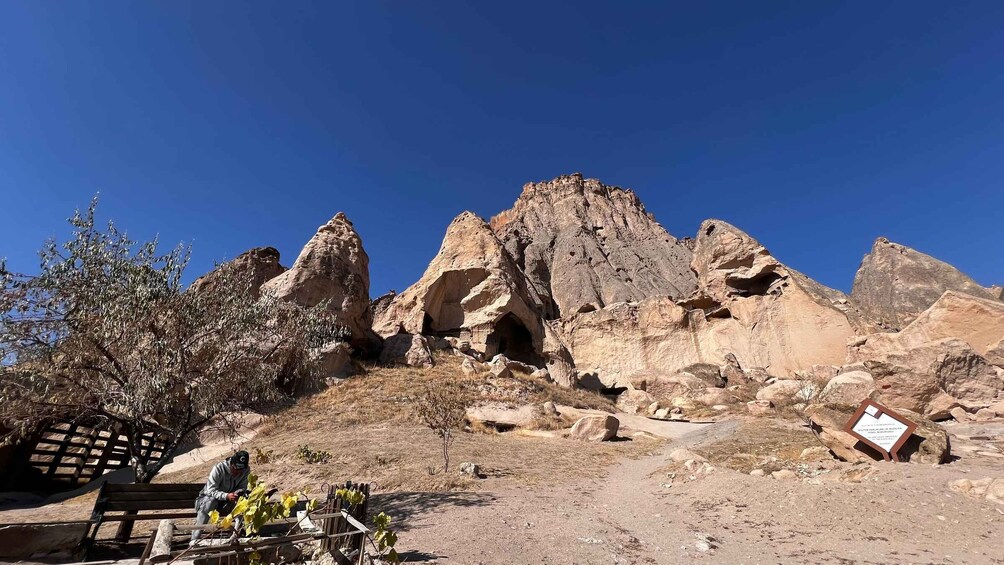 Genieße die atemberaubende Aussicht auf das Pigeon Valley, das für seine in den Fels gehauenen Taubenhäuser und malerischen Wanderwege bekannt ist. Dein Reiseleiter wird dir erklären, wie die Dorfbewohner früher diese Taubenhäuser nutzten, um Dünger für die Ernte zu sammeln.
